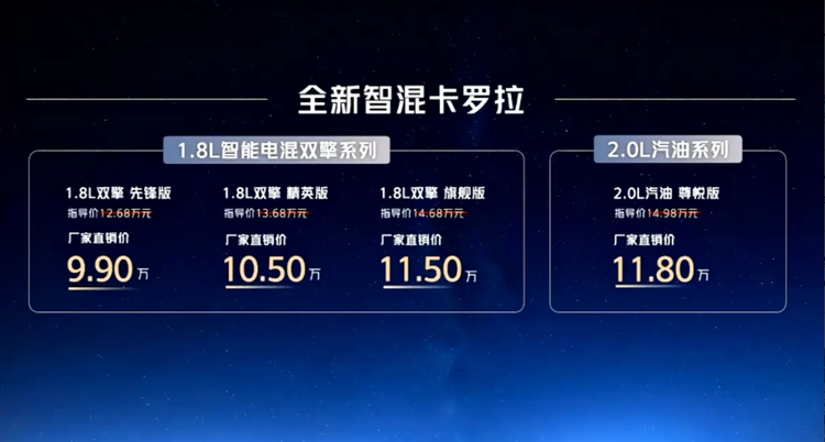 从整体产品结构来看,全新智混卡罗拉通过2.0L燃油版与1.8L混动版形成清晰区隔。燃油版更适合注重动力响应与驾驶线性的用户,而混动版则面向通勤强度高、关注燃油消耗的家庭群体。结合厂家直销价区间,全新智混卡罗拉在购车门槛与用车成本之间形成较为平衡的关系,对理性购车用户更具吸引力。