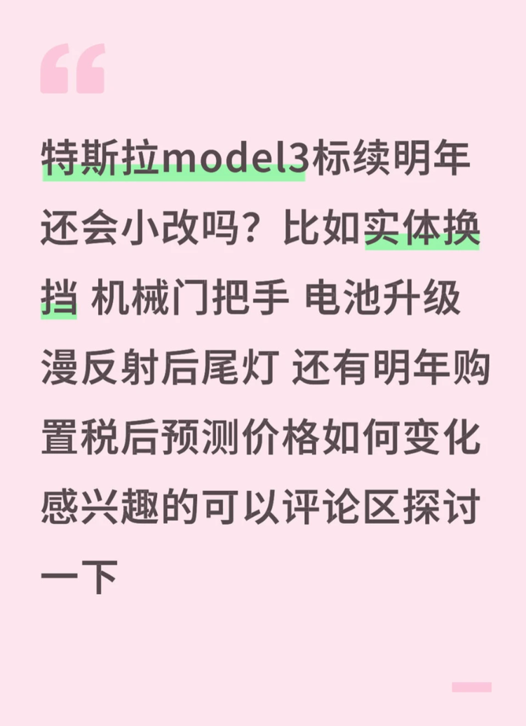 但这个 “涨价” 对应的,不会是 “体验补全”,而是 “技术参数升级”(比如续航多 50km)—— 用户期待的 “机械门把手、实体换挡” 不会回来,反而可能因为 “电池升级”,让内饰、细节体验的短板更突出。评论区说 “25 年需要有一些变化”,但特斯拉的 “变化”,从来是 “参数好看” 优先,而非 “用着舒服” 优先。