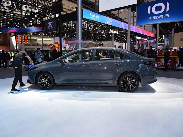 内饰部分,当然采用了全新的设计,和新款卡罗拉锐放等车型看齐,悬浮式大型液晶屏配仪表盘组成双屏系统,平直的中控台面有撞色工艺可供选择,加入了皮革缝线工艺和软包材质,档次感较老款卡罗拉有着明显的提升,扶手箱前端区则依旧是机械挡杆,并设计了悬浮式的亮黑色面板造型,融入了气氛灯带,手机无线充电面板,杯架都不会缺席,增强了一点点时尚感,全新的车机融入了华为Hicar,增强了使用的体验。