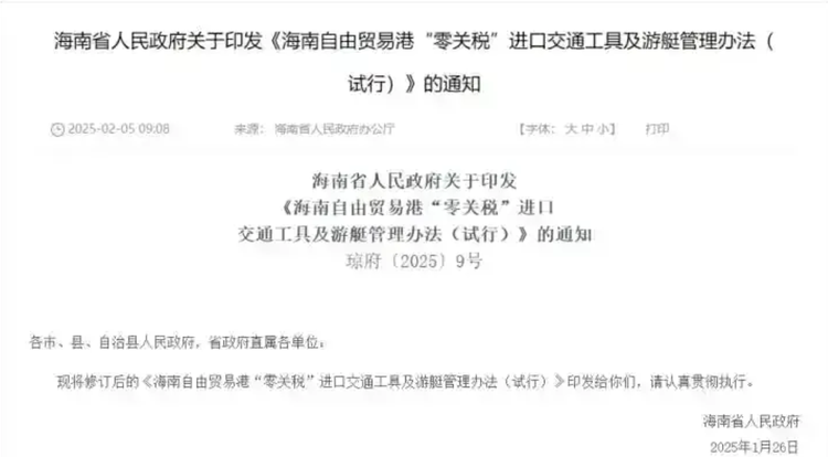 从政策文本来看,“零关税”并不是针对所有进口车辆的普惠性优惠,而是一项有明确使用边界的产业支持政策。根据《海南自由贸易港“零关税”进口交通工具及游艇管理办法(试行)》,只有符合条件的进口交通工具,才能享受关税、进口环节增值税和消费税的免征待遇。政策制定的核心目标,是降低海南自贸港内交通运输、旅游等相关产业的运营成本,提高行业运行效率,而不是为个人消费市场提供低价进口车。