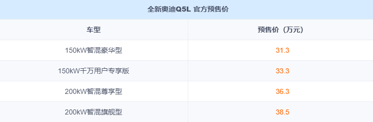 要知道,现款Q5L的官方指导价可是39.68万起步啊!而这新车还没上市,起步价就直接砍了8万多,看来高高在上的奥迪,也是被国产新能源给逼急了。