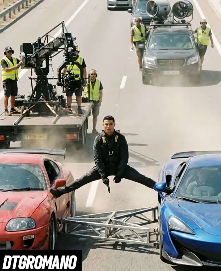 C罗也有不少飙车和动作镜头,但不会真的搞实操,都是特摄+后期特效。身价那么高的演员,可谁都不敢让他去做高风险动作吧。