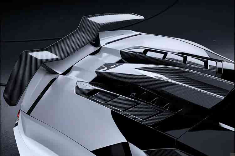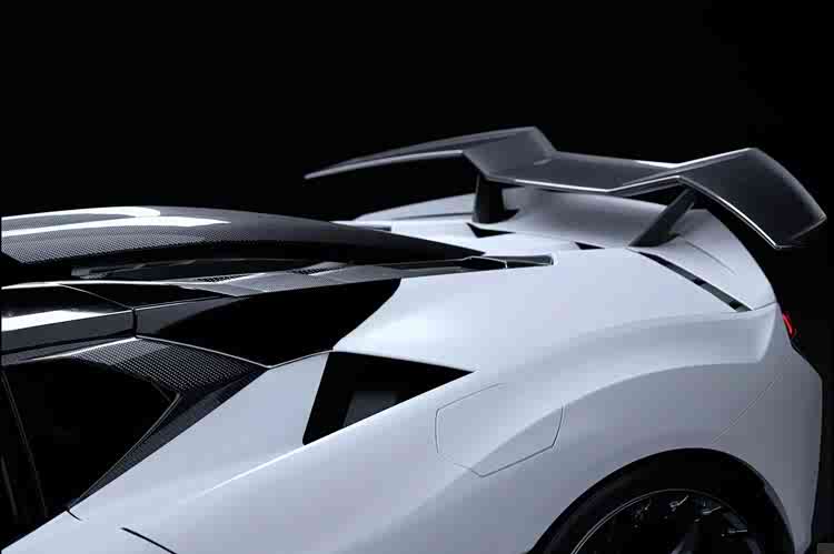Vision 这款套件方案并非只有简单的饰条点缀,而是大幅度的改装工程,车头换上双层式下扰流与定风翼设计,引擎盖与前叶子板也同步增侧导流孔来加强散热,并且优化空气力学。最重点的宽体轮拱,辅以全新设计且强调空力的圈胎组,能借此营造出更宽扁运动的视觉形象。车尾部分,最明显之处在于固定式大尾翼的改装,颇有几分向 Gallardo Superleggera 致敬的味道。