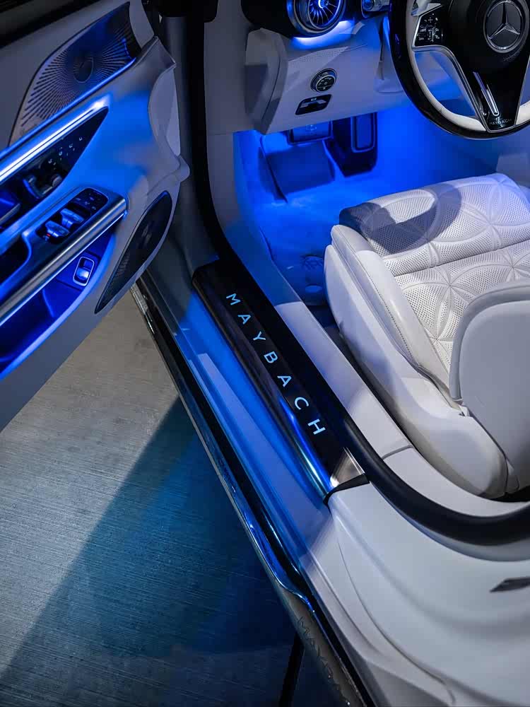 外观上有着很多奢华的细节,前盖带有迈巴赫的标识,中网运用了全新的设计,提供镀铬的竖条纹理,并且更加密集,上方带有迈巴赫的英文字母标识,前包围采用了贯通式的格栅,内部带有迈巴赫的标识,显得比较奢华。侧面采用了密集的多辐轮毂设计,尺寸较大,整体的视觉效果也是比较优雅奢华,侧裙带有套件的点缀,有着奢华的风格。尾部运用了简约的设计,提供三角形的尾灯组,尾部也是有着镀铬的点缀。