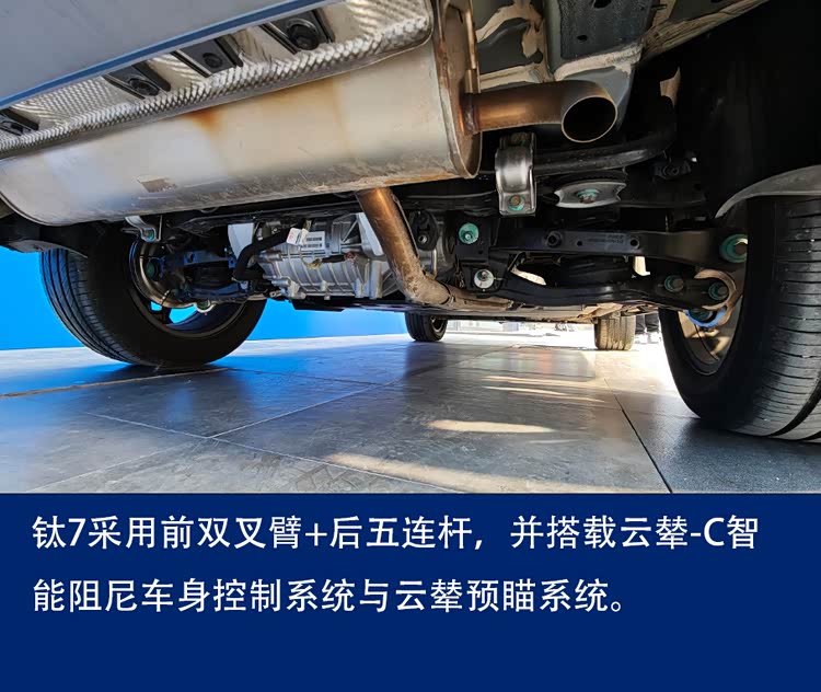 悬架配置上,钛7采用前双叉臂+后五连杆,并搭载云辇-C智能阻尼车身控制系统与云辇预瞄系统,能精准过滤坑洼路面的颠簸,配合智能防晕车模式,让家人的乘坐舒适性大幅提升。