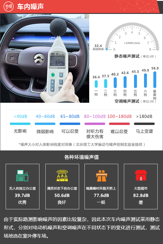 在静态噪声测试环节,2026款蔚来ES8在启动状态下车内实测噪声值为32.4dB,在测试过的同级别车型中处于中上游水平。