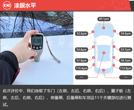 本项目主要通过对新车在基本参数、车身工艺、漆膜水平、车内空气质量、振动与噪声、驻车雷达以及灯光/视野等13个项目的实地测试,以客观数据的形式全方位直观展现新车在商品性方面的表现。