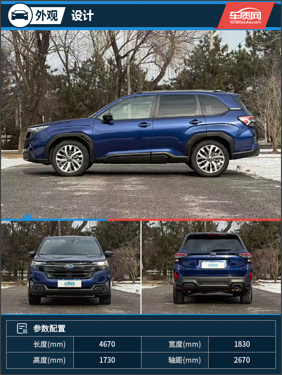 全新斯巴鲁森林人采用Bolder果敢设计理念,车身线条舒展有力。前脸造型厚实,宽大的前格栅与前灯组融为一体,散发出越野气息。前包围底部大面积黑色饰板,能在户外穿越时提供保护,减少刮擦损伤。