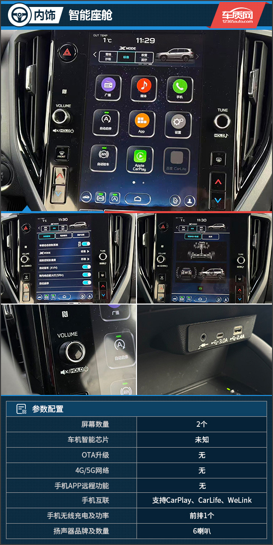 11.6英寸纵置中控屏两侧保留了实体按键与旋钮,便于行车过程中盲操作。车机系统界面简洁直观,运行流畅度符合日常使用需求。虽然在智能生态方面未做过多的拓展,但可通过CarPlay、CarLife及WeLink等互联功能,达到主流体验。此外,仪表台下方还配备了USB与AUX接口,并提供手机无线充电板,进一步强化了用车便利性。