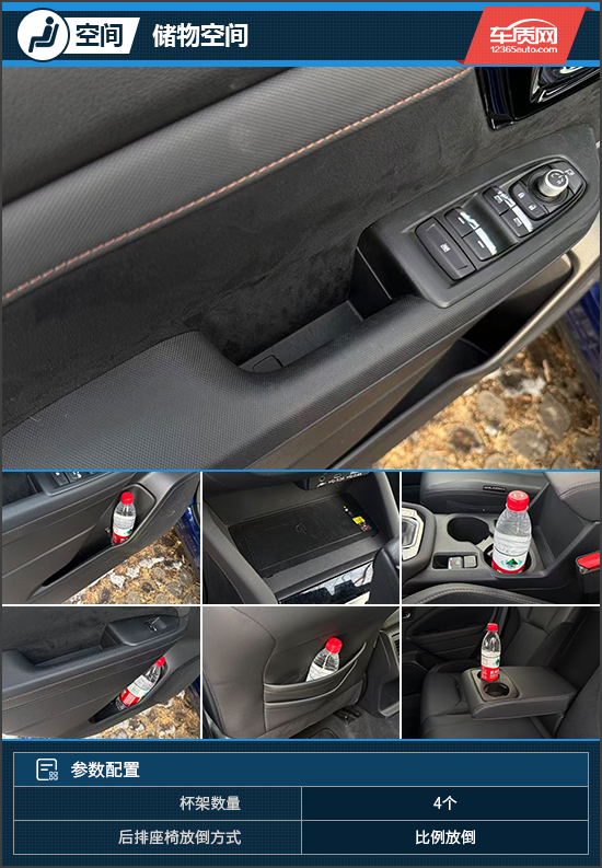 储物空间方面,储物槽数量适中,中控台配备了手机无线充电面板,并带有物理开关和工作指示灯,很人性化。同时,车门拉手采用了封底式设计,可以当做储物槽使用,提升了空间利用率。