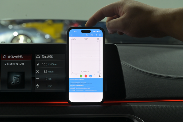 症状就是前面说到的,凉车启动会遇到共振,甚至是启动的一瞬间会有“嘣”的一声并伴随震动。从手机测量的振动波形看出,这台车启动的振动波峰有点异常高了。