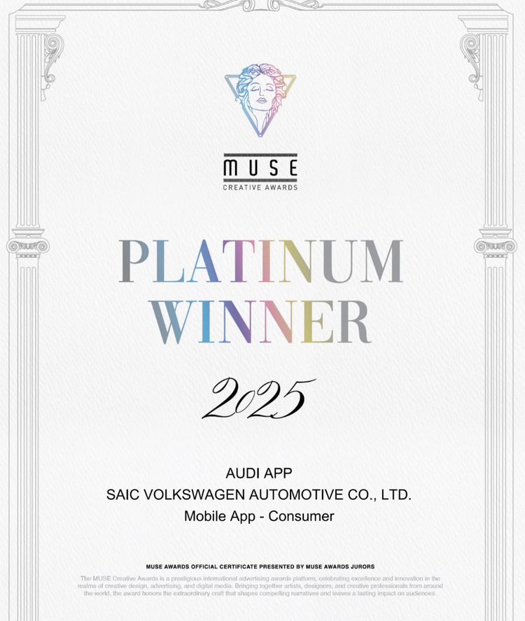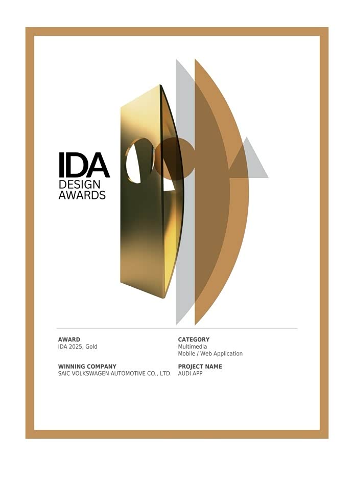 近日,上汽奥迪 AUDI APP 接连在两项国际设计大奖中斩获最高荣誉,一举摘得MUSE创意设计奖(MUSE Creative Awards)铂金奖与美国国际设计大奖(International Design Awards, IDA)金奖。此次连获国际双奖,不仅体现了全球设计界对 AUDI APP 在用户体验与美学创新方面的高度认可,也彰显了上汽奥迪在数智生态领域的领先实力。