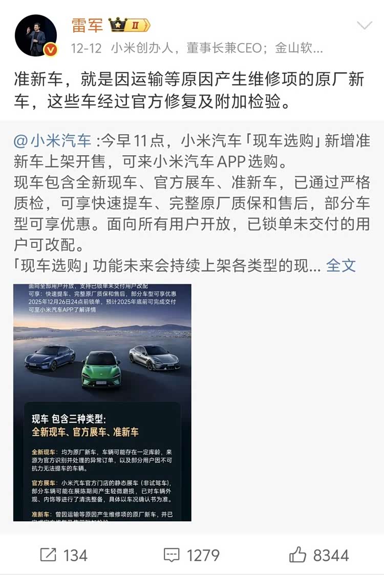 没想到,原本的争议在雷军亲自解释清楚后,直接转为流量,当这些准新车秒售罄的那一刻,所有质疑都烟消云散。