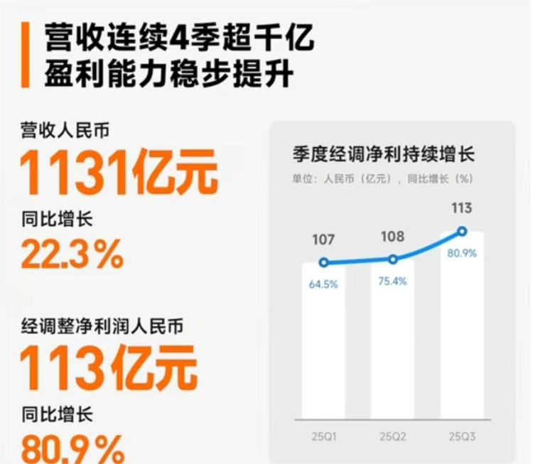 在技术投入上,小米一直很舍得花钱。财报显示,小米Q3单季研发投入91亿元,同比增长52.1%;前三季度总研发投入235亿元,已接近去年全年。其中,仅AI领域年投资就超70亿元,智能驾驶团队规模超过1800人。