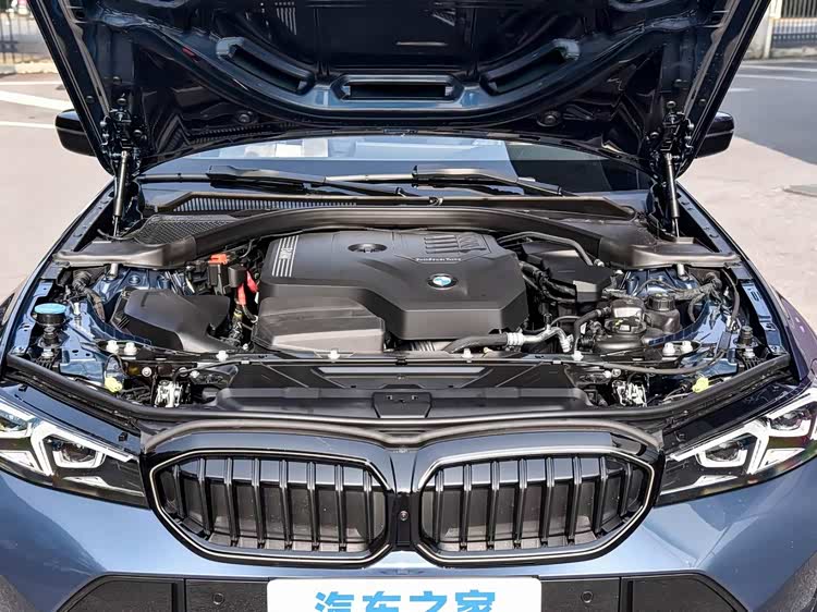宝马3系标志性的双肾进气格栅与锐利的LED天使眼大灯相连,配合引擎盖上清晰的棱线,塑造了运动感十足的车头视觉冲击力。M运动套装版本的前后包围以及轮毂设计,更将这种攻击性和张力进一步加强。