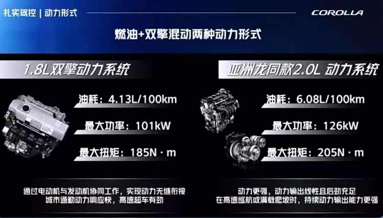 结语:一汽丰田新款卡罗拉的全新前脸造型和全新内饰设计能够给我们带来新鲜感,车机升级为高通骁龙8155P芯片,标配L2驾驶辅助系统,后排腿部空间要比现款更充足,1.8L双擎和2.0L燃油版能够满足不同用户需求,在我看来,新车本质上就是亚洲狮的改款,而这次纳入卡罗拉阵营,并且降低了定价,提升了竞争力,那么你会考虑它吗。