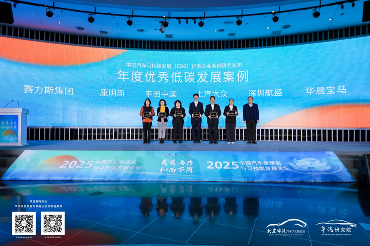 论坛期间,华汽研究院联合罗兰贝格、商道咨询分别发布《中国汽车全球化发展报告2025》《中国汽车可持续发展蓝皮书2025》,系统梳理了中国汽车产业全球化可持续发展目标下的发展机遇、现实挑战及实践路径,并通过赛力斯、康明斯、丰田中国、航盛电子等领先企业的优秀案例,呈现了汽车企业在ESG管理、绿色低碳与社会责任方面的最新实践。