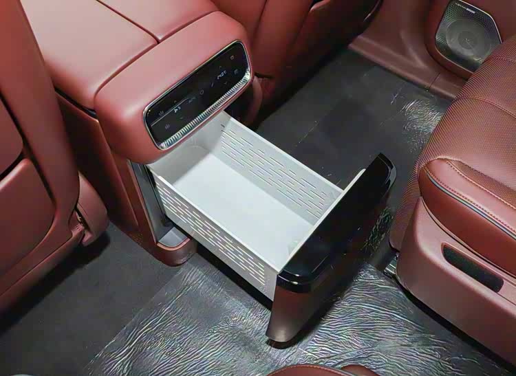 座舱是非常典型的新能源设计风格,驾驶者面前有独立的仪表屏,中控屏尺寸达到16.1英寸,内嵌华为鸿蒙5座舱系统。岚图泰山采用2+2+2六座布局,后排配有丰富的娱乐舒适配置,车顶配有21.4英寸吸顶屏,两种独立的二排座椅扶手上还有3.5英寸扶手屏。前端配有13L冷暖箱,试听方面有32个扬声器做保障。