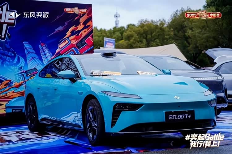 在这场潮流盛会中,东风奕派的明星车型同样以吸睛造型成为全场焦点。作为东风奕派两周年重磅力作,eπ007+以14万级唯一激光雷达四驱轿跑的硬核实力,打造年轻人的第一台“百万”级四驱轿跑。其宽体低趴弓形溜背造型仿若舞者灵动的肌体动线,完美融合力量感与美学张力;苍穹灰、港湾蓝配色,搭配19英寸运动轮辋、电动尾翼、蝶影光毯投影灯等个性配置,始终是画面里的C位,精准戳中年轻人审美。