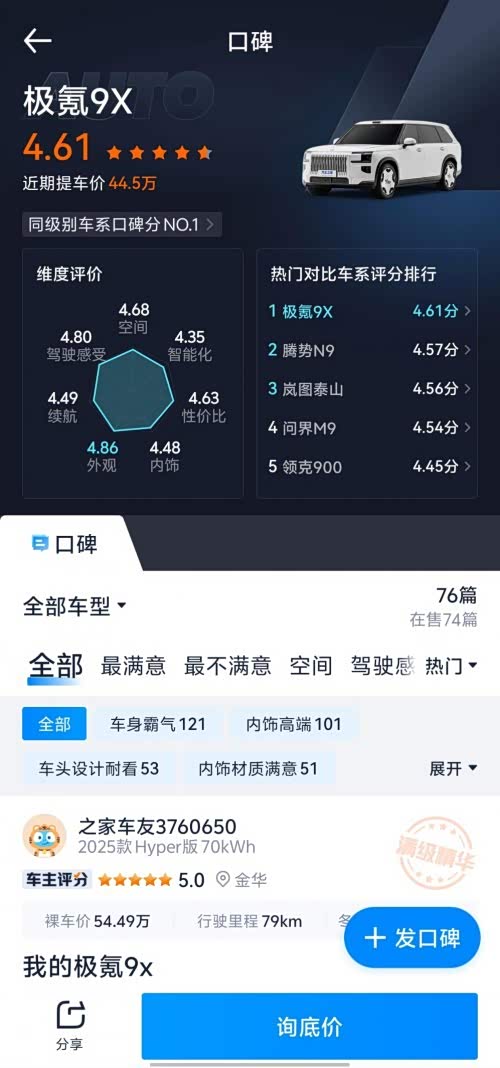 车家号·0浏览·2025-12-22 15:19 · 河南极氪9X(参数|询价)荣登汽车之家和懂车帝双榜首,这个成绩含金量极高,因为它代表了“大型SUV”这个细分市场中,用户对全能型产品的极度渴望。