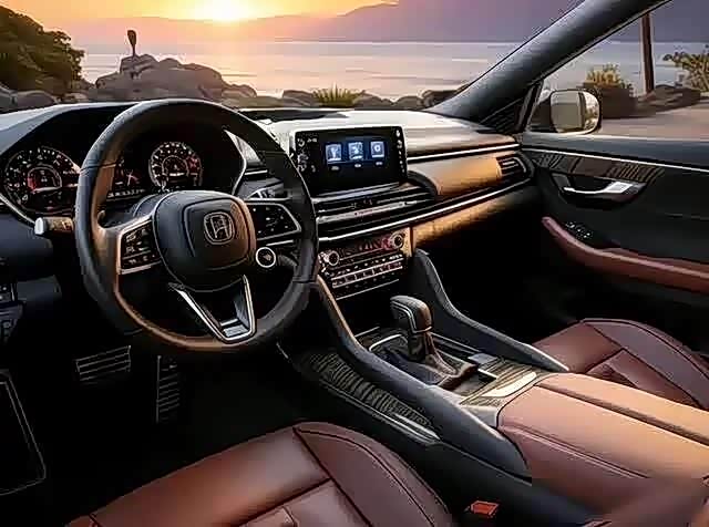 尾部最令人瞩目的设计元素是四个圆筒形排气管,这与思域Si之前的设计理念是一致的。红色与白色交错的连续尾灯,在夜间显然展现出极高的辨识能力。从展示的渲染图来看,车顶的设计线条并没有被压缩,因此后排的空间应该足够容纳三名乘客。这款车的内饰设计并不过分夸张,它配备了液晶显示屏和悬浮中控屏,底部还保留了实体按键,使得使用变得非常方便。中央控制台的触感是由柔和的材质和木纹装饰板构成的,这使得它比我的旧 雅阁(参数|询价)更加悦目。