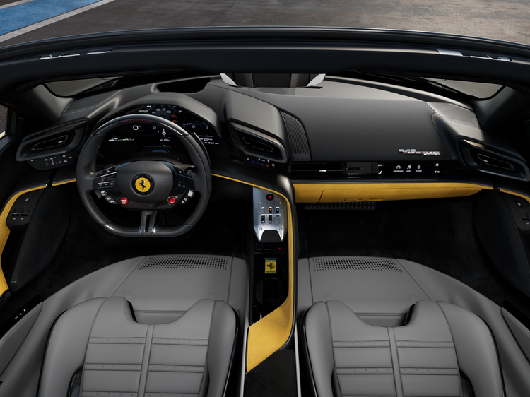 设计层面,研发团队通过对历代Testarossa车型的经典设计元素的归结,包括宽扁低趴的车身姿态、标志性侧部进气口等经典符号进行重新演绎,同时融合源自LaFerrari、SF90等旗舰车型的主动空气动力学技术。其中,可调式尾翼的搭载具有重要意义,该部件可根据车辆行驶速度、驾驶模式自动调节角度,提升车辆高速行驶时的下压力,保障操控稳定性。