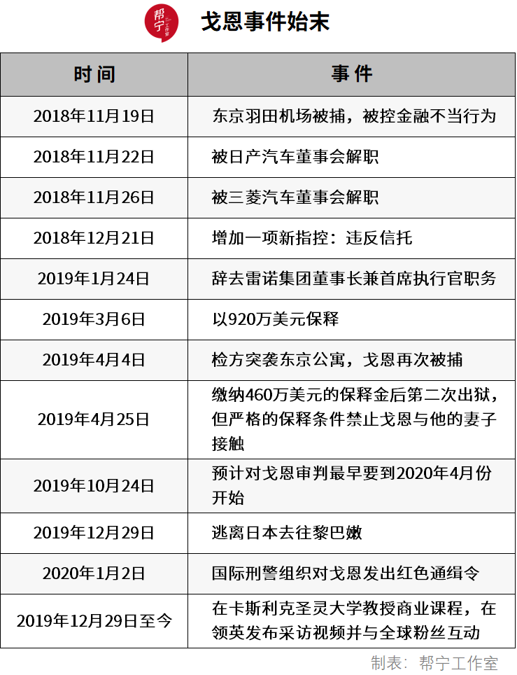 日本和法国检察官发布了对戈恩的逮捕令。戈恩在黎巴嫩度过了大部分童年时光,而黎巴嫩不引渡其公民,戈恩被安全地留在了这个地中海国家。