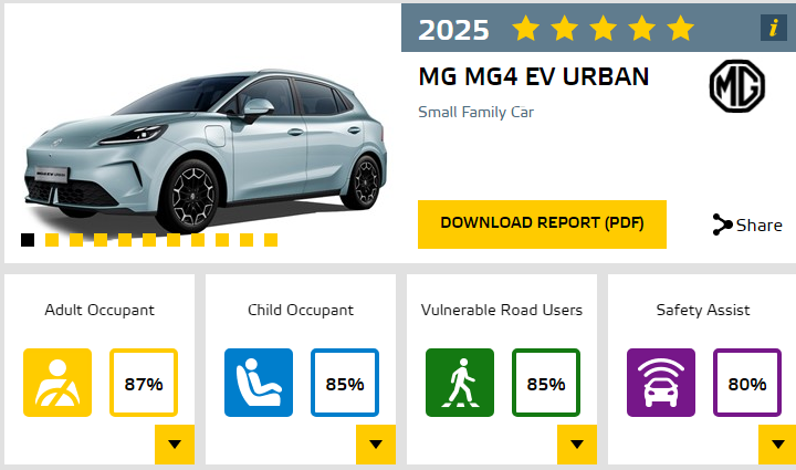 其二,技术适配壁垒——欧英严规成加分项,混动家族13.7万+辆(同比暴增300%),蓝芯混动1.8L/100km油耗适配高油价需求,主力 MG4(参数|询价)获E-NCAP五星认证(车身刚度超宝马X7)及2026轩辕奖,实现“欧英+国内”双认证;