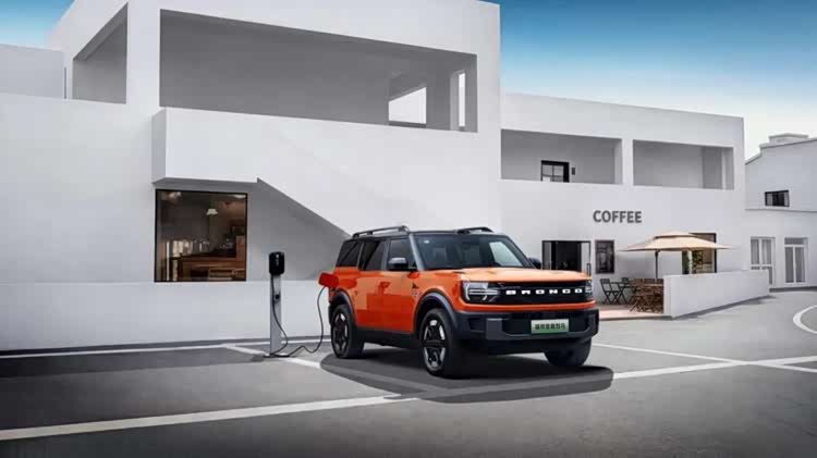 福特智趣烈马在外观设计上成功地将家族硬派基因与新能源时代的科技感相融合。新车延续了福特烈马系列的硬朗风格,前脸采用封闭式格栅设计,中央镶嵌了可点亮的“BRONCO”字母标识,极具辨识度。车身侧面线条平直,呈现出经典的“方盒子”造型,搭配宽大的黑色轮眉和外挂式全尺寸备胎,野性气息十足。其车身尺寸长宽高分别为5025/1960/1825毫米,轴距达到了2950毫米,保证了宽裕的车内空间。更值得注意的是,新车拥有30度的接近角、32度的离去角以及600毫米的涉水深度,为其轻度越野能力打下了基础。