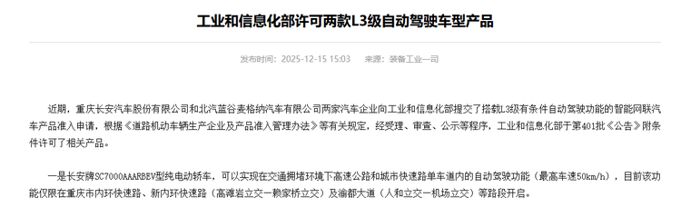 2025年12月20日,全国首块L3级自动驾驶专用正式号牌“渝AD0001Z”正式交到了长安汽车手上。