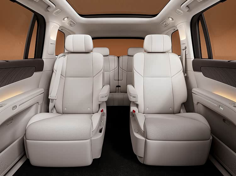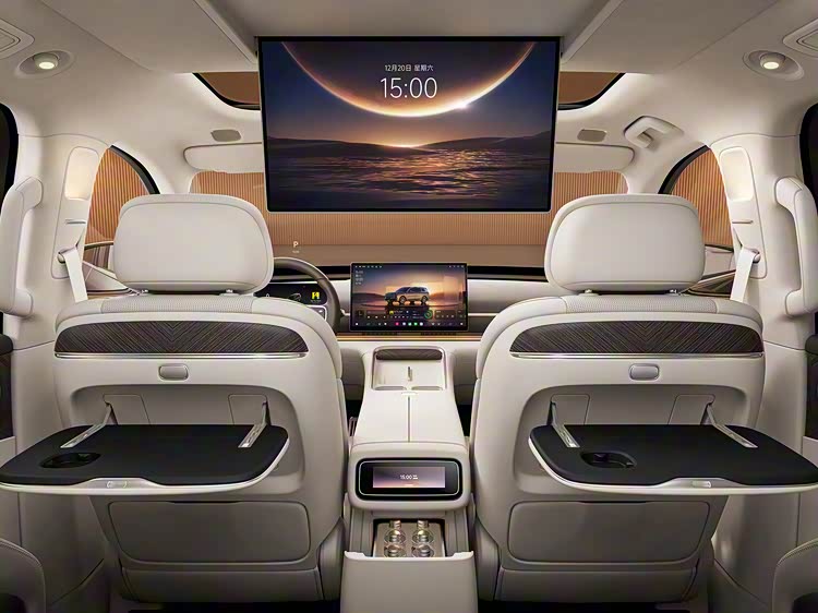 空间上,新车拥有5座、6座、7座多种布局组合,其中二排零重力座椅支持120°零压躺姿、4向腿托,并且还提供二排双折叠桌板以及全电动车规级冷暖冰箱,另外在迎宾模式下可形成195mm超宽中央通道,方便第三排乘客进出。第三排座椅提供双扶手,支持电动折叠、座椅加热以及靠背支持131°无级调节国内,同时提供二三排均提供遮阳帘。配置上,新车还将提供超大天幕、夹层隔音玻璃、1600万色光语氛围灯、50W手机无线充电、智能香氛系统、森林氧舱系统、半苯胺头层真皮座椅、主驾头枕音响、Leap Sound 23扬声器全景声音响等配置。