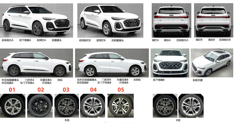 在轮毂方面,全新奥迪Q5L将会提供6种样式选择,尺寸上有19/20/21英寸选择,入门版也支持选装,标配19英寸、中配为20英寸、顶配为21英寸。