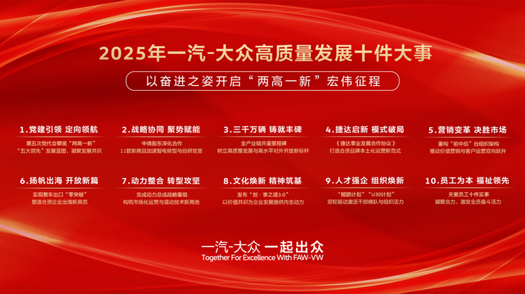 回望2025年,一汽-大众秉持产业报国初心,履行央企合资企业责任,实现了经营的稳健与发展的提质。
