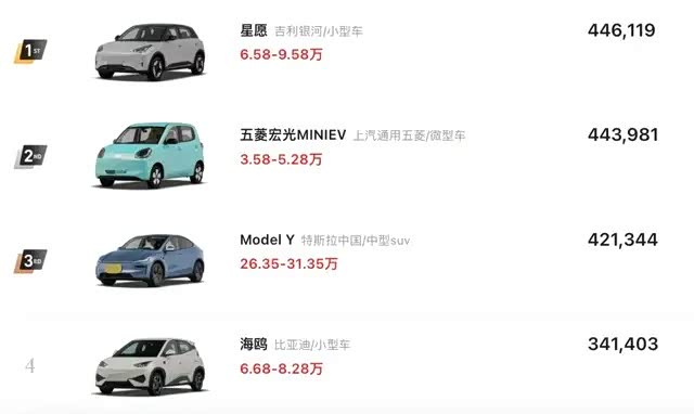五菱宏光MINI EV巅峰时曾长期霸占国内新能源销量榜首,但随着像吉利星愿这样有着更优质用车体验的产品出来之后,更多的消费者最终还是选择了后者。