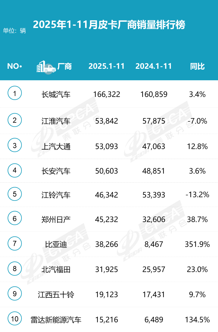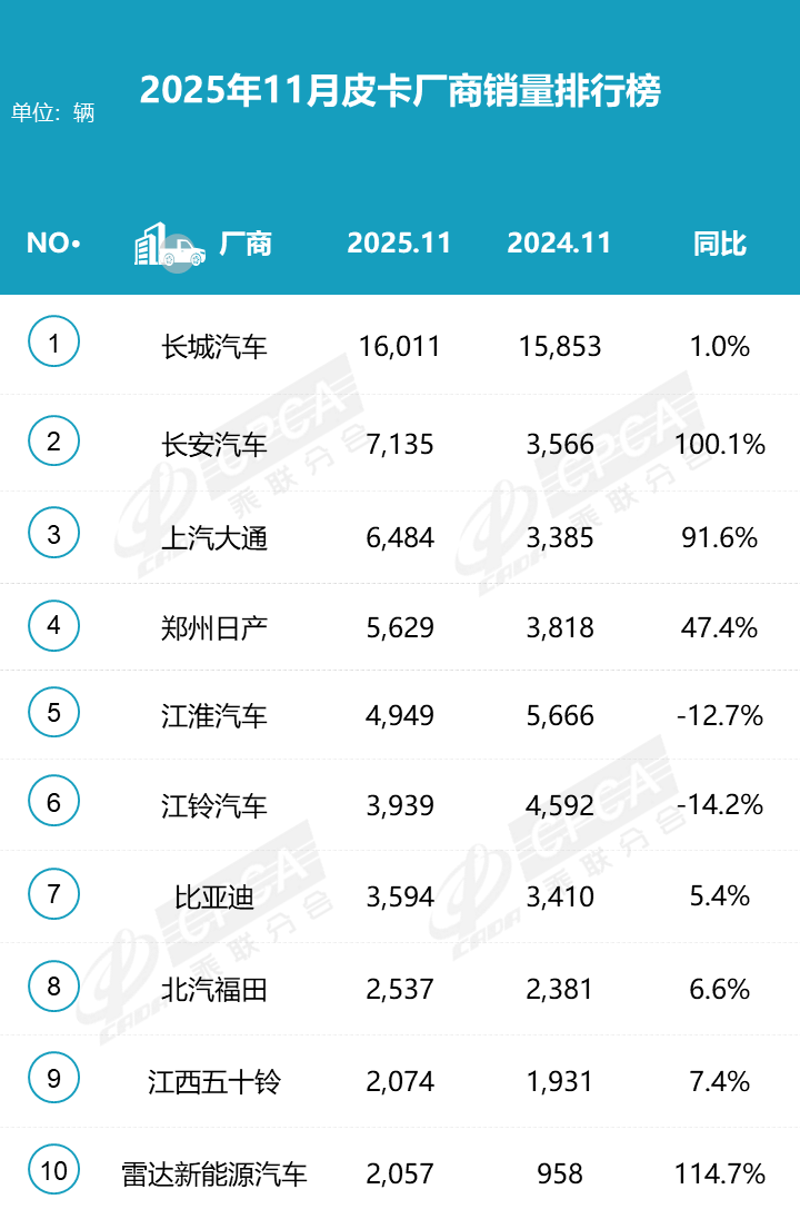 皮卡市场11月销量冲高,长城锁定年度冠军 新能源皮卡增速超150%