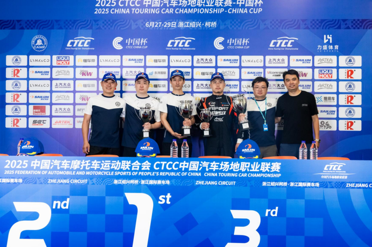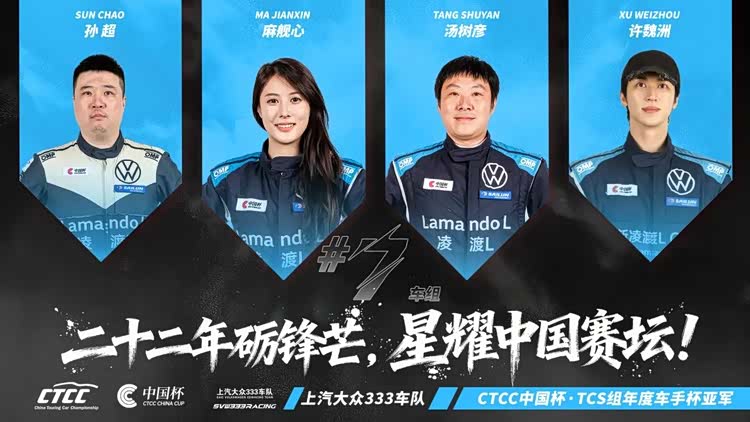 首回合决赛期间突遭狂风暴雨,赛道能见度急剧下降,车队果断采取岔开停站策略,孙超/汤树彦率先换雨胎抢占先机,高华阳则接管领跑位置,最终因雨势过大赛事提前终止,车队成功包揽TCS组别冠亚,同时斩获车队杯冠军。第二回合较量迎来炎炎烈日,孙超/汤树彦夺得组别季军。这已经是两位车手在本赛季六回合比赛中第五次登上组别颁奖台。此外,高华阳也在该回合斩获组别亚军。凭借两大车组的团结协作,上汽大众333车队再一次获得TCS组车队杯冠军,展现出强大的抗压能力与战术执行力的同时,车队继续在车队-车手积分榜上稳步推进。
