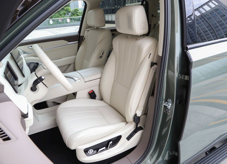 内饰方面,蓝山智能进阶版的内饰采用“科技豪华+家庭友好”的设计理念。在2+2+2的六座布局中,第二排拥有1米级腿部空间,搭配Nappa真皮座椅、双电动腿托与10方向电动调节。