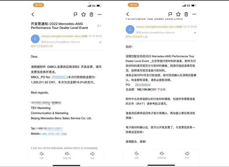 直至2025年12月15日,梅赛德斯-奔驰(中国)才正式发出通知,明确表示可针对上述尾款开具对应发票。不过需要注意的是,在此次开票延迟的整个过程中,其并未就延迟原因给出任何合理且明确的解释说明。
