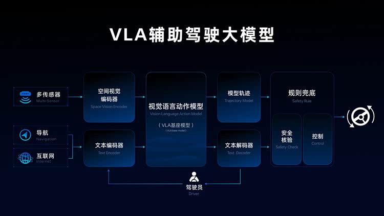 VLA大模型作为视觉-语言-动作模型的缩写,源自人工智能机器人领域,其核心在于通过多模态与大语言模型的深度融合,赋予机器更接近人类的思维能力。通过语音控车、CoT推理卡片、防御性驾驶、特殊场景理解四大功能,实现从感知到执行的智能闭环。让车辆的辅助驾驶从“机械执行”转向“人性理解”,从“无畏”转向“敬畏”。