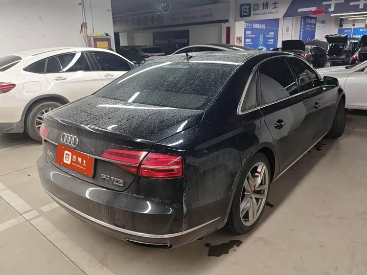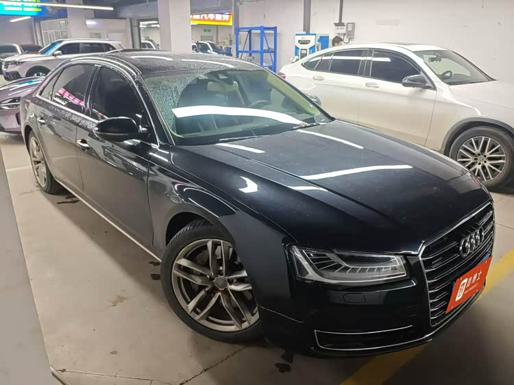 今天带来的这辆 奥迪A8(参数|询价) 2014款 A8L 60 TFSI quattro豪华型,上牌地车源地均为成都,上牌日期2015年9月,表显里程13万公里,黑色车身浅色内饰,过户次数1次。新车指导价184.8万,二手车报价27.8万含过户费。