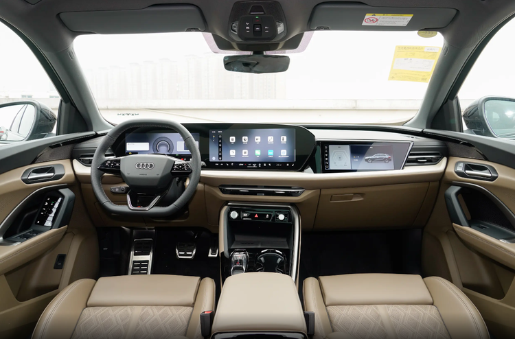 全新一代的奥迪Q5L在内饰上展现了更高的科技和现代感。它配备了三块显眼的液晶屏幕,其中全液晶仪表的尺寸为11.9英寸,中控屏幕为14.5英寸,而副驾驶屏幕的尺寸为10.9英寸。200KW版本标准配置了B&O音响系统,换挡机制采用按键式,无线充电也是标准配置,充电功率达到40W。