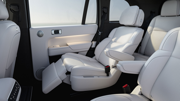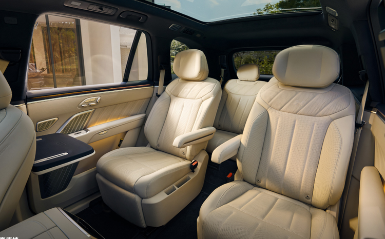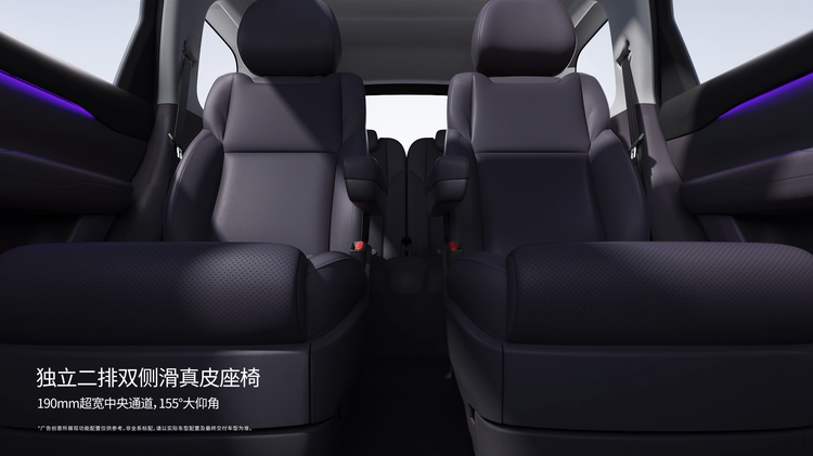 二排配备独立座椅,除了常规的前后调节之外,还可以左右调节,既可以拓宽中央通道(最宽可达到190mm),方便三排乘客上下车,又可以拉近二排乘客的距离,增加亲密感。三排采用剧院式设计,座椅高度略高于第二排,视野较好。