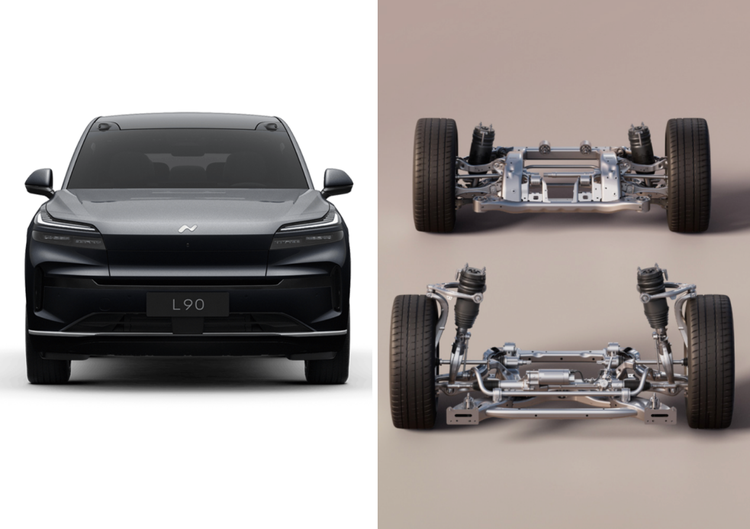 乐道L90底盘名为行云智享底盘,采用前双叉臂 + 后五连杆独立悬架,硬件配置高端且智能调校成熟,针对性解决了大型 SUV 易晃、易飘的问题,适配家庭全场景出行,但受限于成本,入门版六座并没有给到空气悬挂。