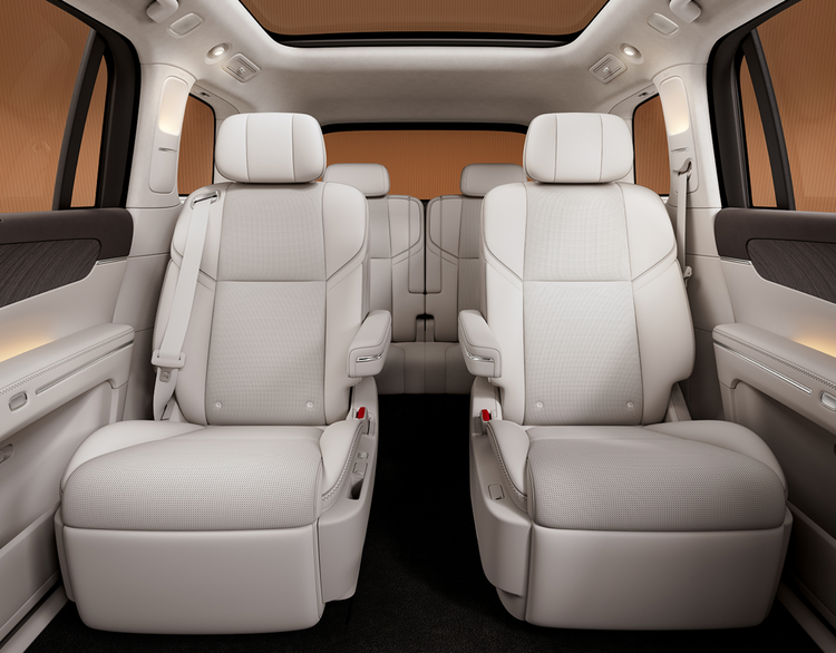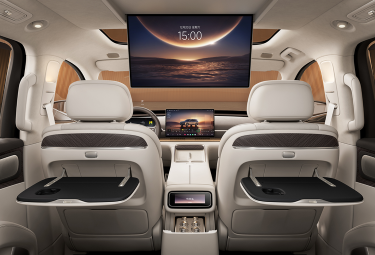 新车将分别推出5座、6座、7座三种座椅布局,按照不同配置车型,车辆后排将配备双折叠桌板、6英寸后排触控屏、21.4 英寸3K电动娱乐屏,六座车型第二排座椅还配备有4向腿托、零重力座椅等,在开启“迎宾模式”后,第二排座椅中央可形成195mm超宽通道,方便第三排乘客上下车。