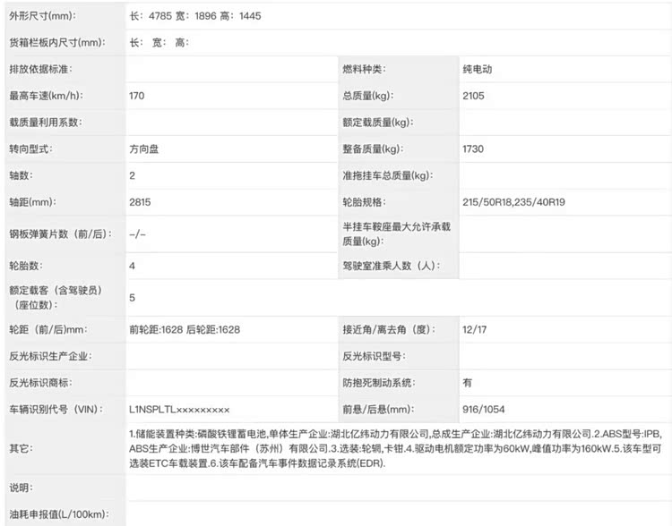 动力与续航是此次申报的核心亮点,新车换搭亿纬动力磷酸铁锂电池后,将提供51.8kWh、61.6kWh、62.2kWh三种不同容量电池以及多种续航里程,CLTC综合工况续航覆盖490km至640km区间,精准匹配不同出行场景。其中51.8kWh版本续航集中在490-540km,适合城市通勤用户,一周一充即可满足日常需求;61.6kWh版本续航570-610km,兼顾通勤与中短途跨城出行,是家庭用户的均衡之选;62.2kWh版本最高续航达640km,针对充电条件不便或长途出行需求频繁的用户,彻底缓解续航焦虑。那么,对于这款新车,你觉得上市后定价多少合适呢?不妨在下方留言讨论吧。