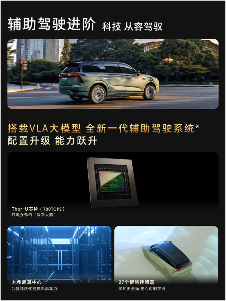 VLA+Hi4,一个提前想到,一个稳稳做到,智能决策与高效执行的深度融合,实现了从“感知-决策-控制”的全链路协同与能力互补。二者就像赛车运动中天衣无缝的黄金搭档:VLA作为“领航员”负责理解、预判与规划;Hi4作为“赛车手”负责精准、稳定与高效执行,两者协同构建了 “主动规避” + “主动稳定” 的双重安全防线,实现了1+1>2的智慧出行体验。