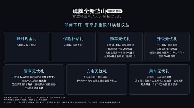 为让更多用户轻松拥有“为爱进阶”的出行体验,魏牌全新蓝山智能进阶版同步推出诚意十足的购车权益: