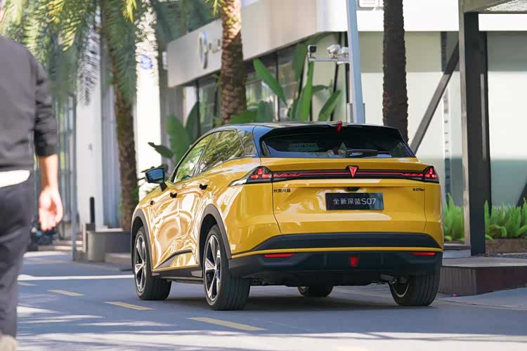 全新深蓝S07提供增程和纯电双版本可选,这次我们借到的是630长续航版,因此重点聊纯电版。纯电版的外观更偏简约运动风,X型棱线前脸干净利落,没有多余装饰,搭配流畅的极光腰线,一眼望去就是轿跑SUV姿态,十分帅气。