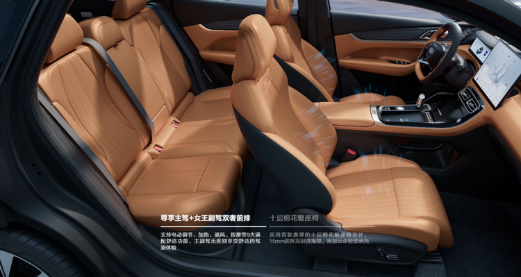 移步车内,内饰设计的核心转向“心境”的营造。环绕式座舱布局以流畅平直的线条为主导,营造出开阔舒朗的空间感,契合了中式美学中“疏朗”与“留白”的意境。细节处,“湖光山色”智能氛围灯可随音乐、驾驶模式变幻256色,勾勒出流动的光影画卷;“3D镭雕”水晶挡把则以数十个精准折射面,成为汇聚视觉焦点的艺术品。材质与光影的精心搭配,旨在让每一次驾乘都成为沉浸于雅致氛围中的感官享受。