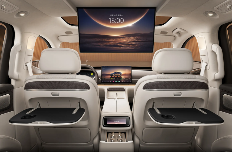 座椅方面,2+2+2的六座布局,二排是零重力座椅,还能躺平。